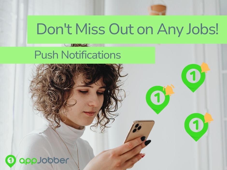 Push notifications are displayed directly on your phone when you're close to a new job. This is how we make your job search as effective as possible – and you'll never miss out on a new job near you again!